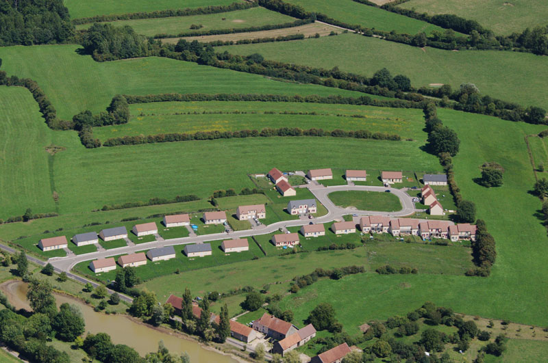 Modèle type de lotissement, avec un travail sur la diversité des types d’habitat (individuel, groupé, collectif). La forme architecturale est plus variée, mais l’urbanisme reste le même.
