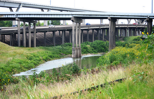 Évoquées juste au-dessus, la voiture et les infrastructures de transports sont très présentes, voire centrales dans la composition de la ville. Nous avons tous en tête l’image d’échangeurs autoroutiers s’enroulant sur plusieurs étages pour éparpiller les voitures dans toutes les directions. Ces nœuds de béton sont fréquents à Houston. Les autoroutes de Houston comptent un peu moins de 927km de voies dans la zone métropolitaine. A la manière de nos boulevards, elles créent la trame principale de distribution de la ville. Un maillage de taille ! D’autant plus que la Loop, Beltway et Grand Parkway, les principales artères, peuvent s’élargir de 6 à 8 voies dans chaque sens…