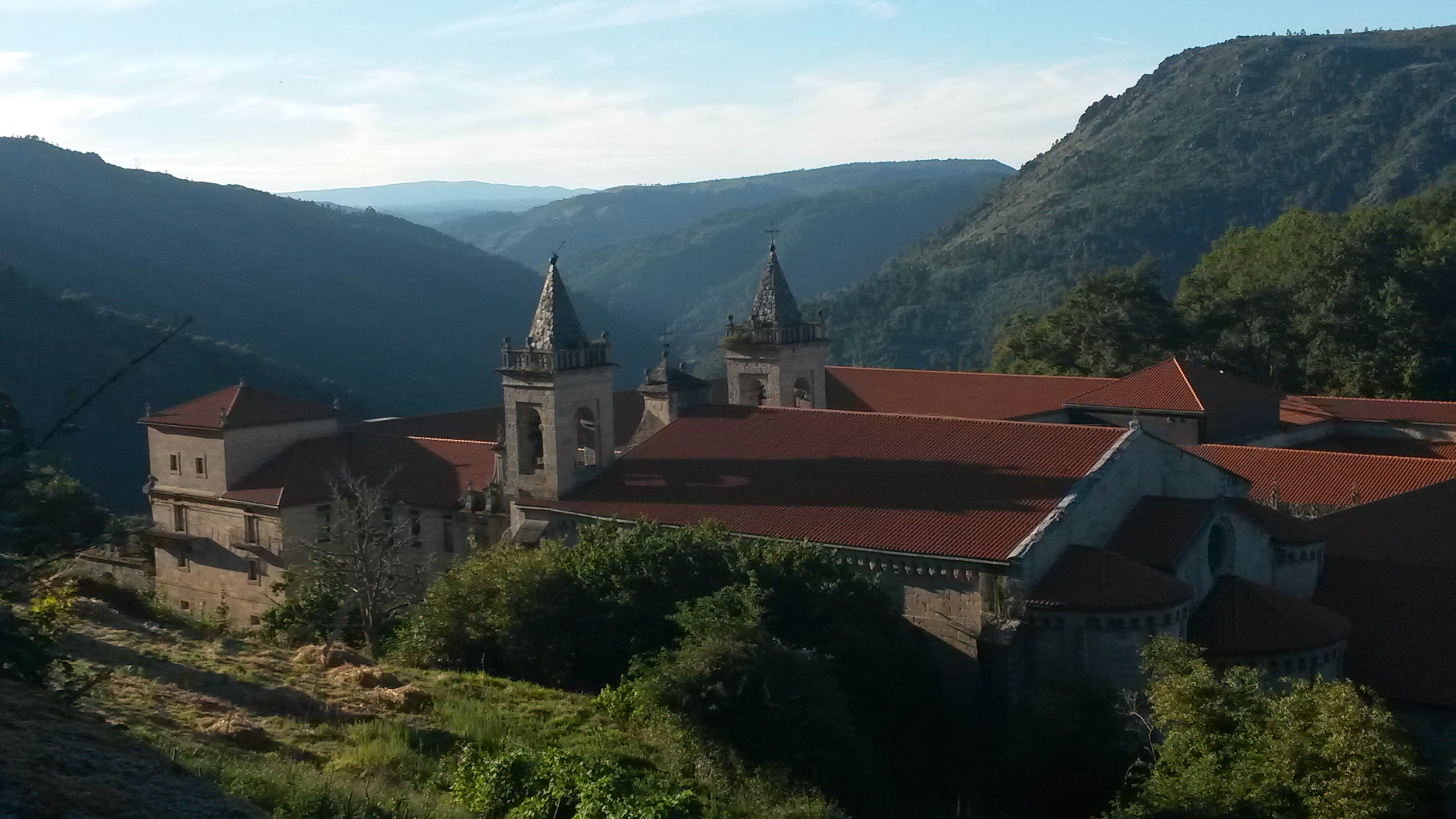 Une fois n’est pas coutume, j’ai eu la chance de retourner en Espagne cet été pour visiter la Galice, il s’agit de la région de Saint-Jacques-de-Compostelle et de ses environs. Outre les splendides paysages et la ville de Saint-Jacques même, j’ai pu découvrir la partie sud de la Galice, limitrophe avec le nord du Portugal. Cette partie de la Galice est ponctuée de vallées encaissées qui forment des ravins sinueux au milieu des montagnes. Les villages se trouvent principalement dans les fonds de vallées et plus récemment, avec l’installation des barrages hydroélectrique, certaines petites localités se sont développées sur les hauteurs. A proximité des gorges du Sil, une rivière qui forme un canyon important, j’ai fait la connaissance d’un ancien monastère réhabilité en hôtel de luxe. Ces édifices à vocation touristiques qui occupent un site artistique et historique portent un nom en Espagne, il s’agit des Paradores. Celui-ci s’appelle le Parador de San Estevo de Ribas de Sil (le nom de la ville). Le monastère réhabilité à partir de 2004 m’a semblé être un excellent exemple de valorisation du patrimoine par l’activité économique et culturelle. Un savant mélange de culture et un bel exercice architectural.