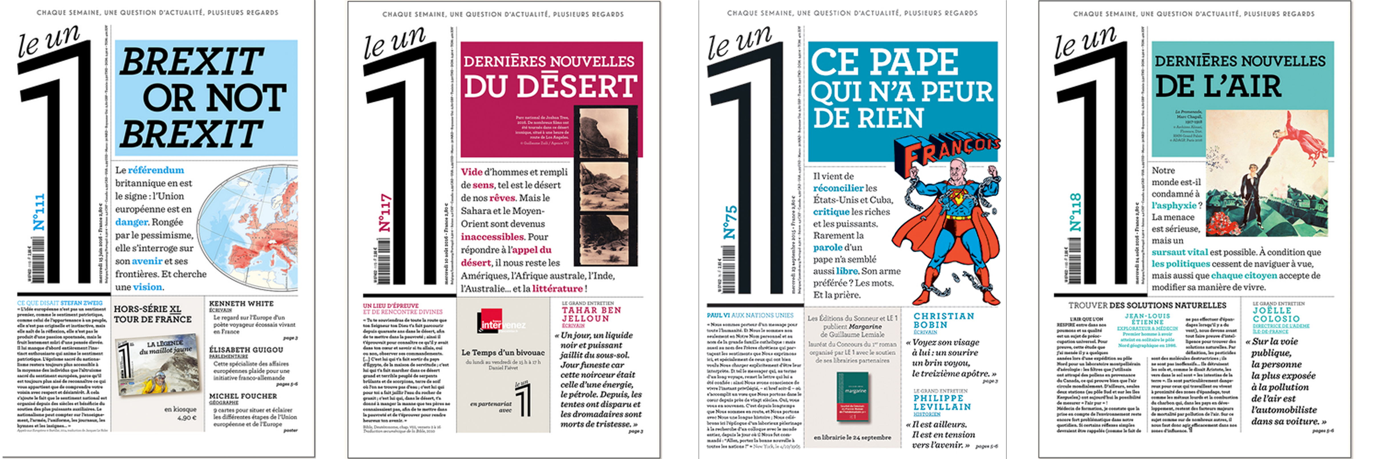 Le 1 est un journal atypique et mordant. A l’heure où l’actu se consomme en masse (comme beaucoup de chose, nous en reparlerons), le 1 propose chaque semaine un numéro qui traite un seul sujet, un seul sujet mais à fond. Le thème porté en couverture est analysé sous toutes ses coutures à travers une série d’articles et de textes issus d’horizons différents. Les contributeurs peuvent être experts, scientifiques, journalistes ou écrivains, ils abordent le sujet en apportant chacun à sa manière, le plus d’informations pour éveiller notre attention.